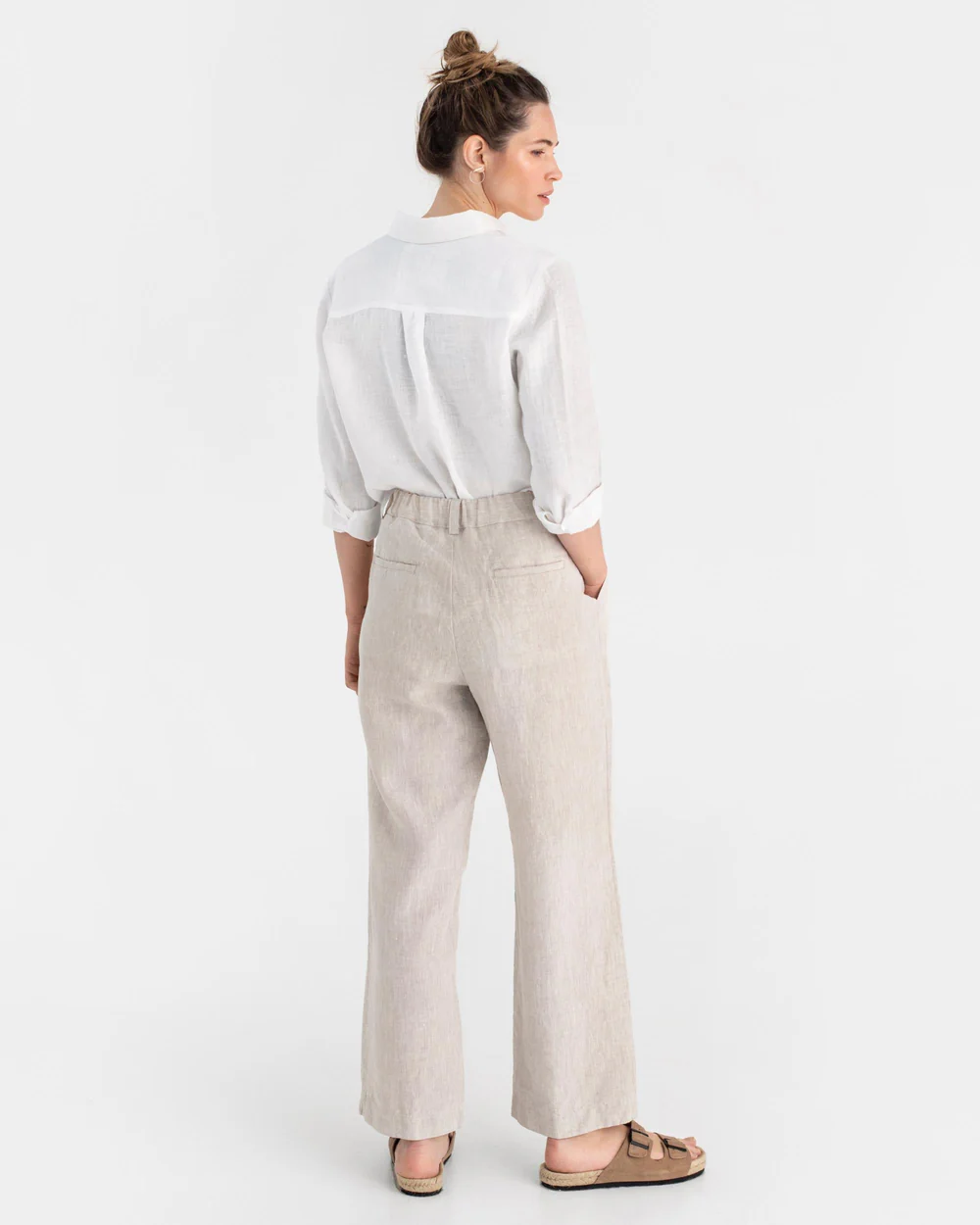 Natural Texture of Beige Linen Wide – Leg Trousers