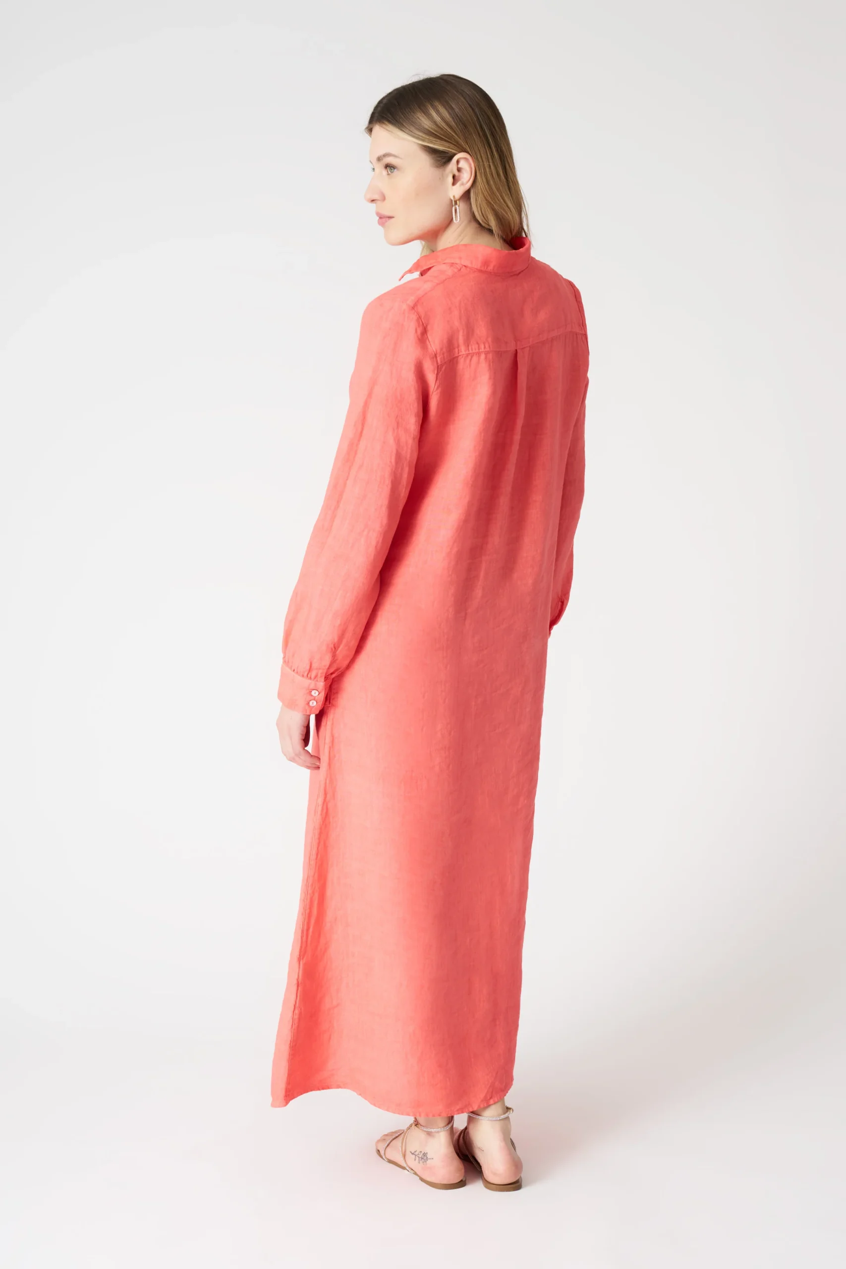 features and Special design:This coral – hued shirt dress is a beautiful blend of sophistication and casual charm. Its button – down front and long silhouette create an effortlessly elegant look.