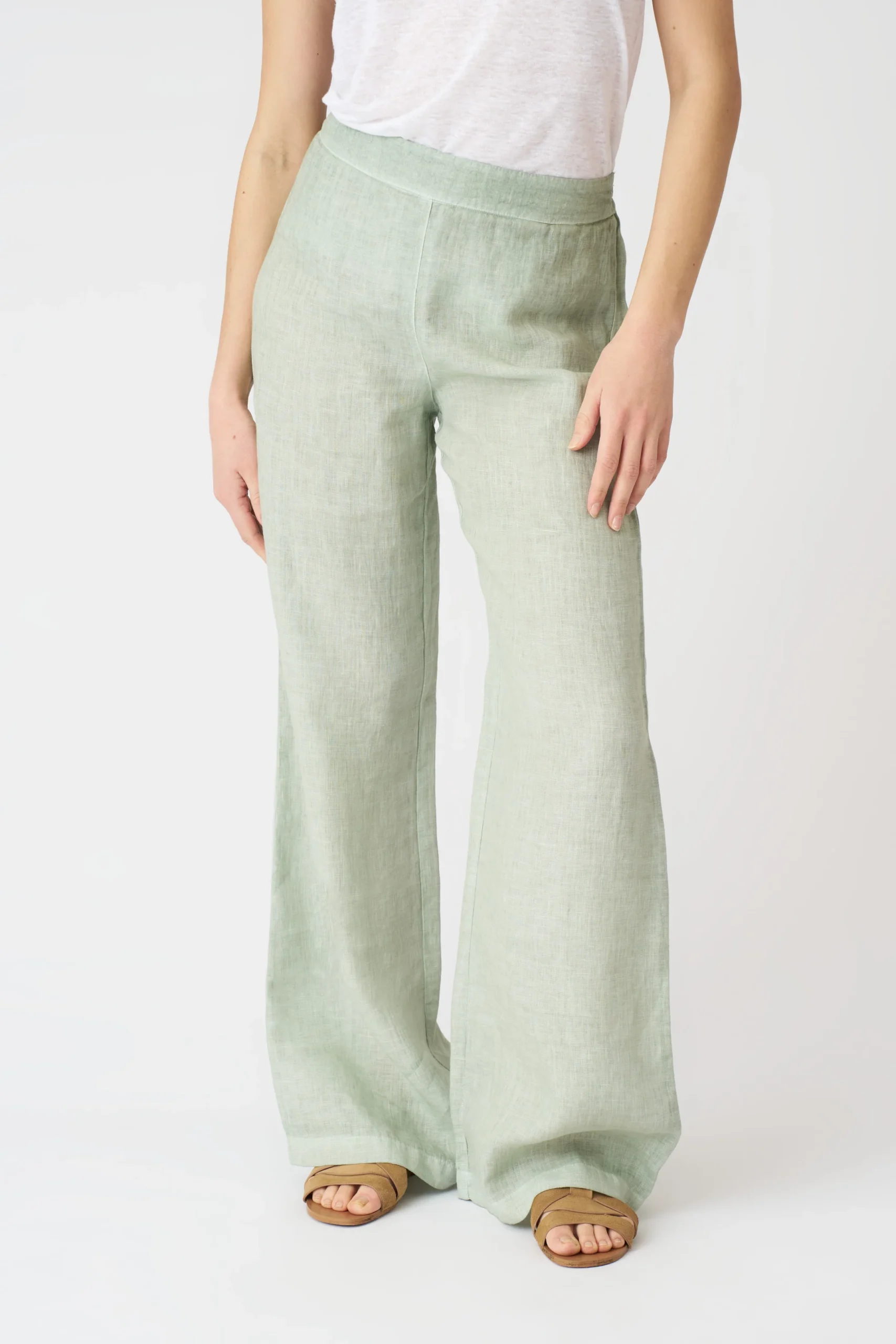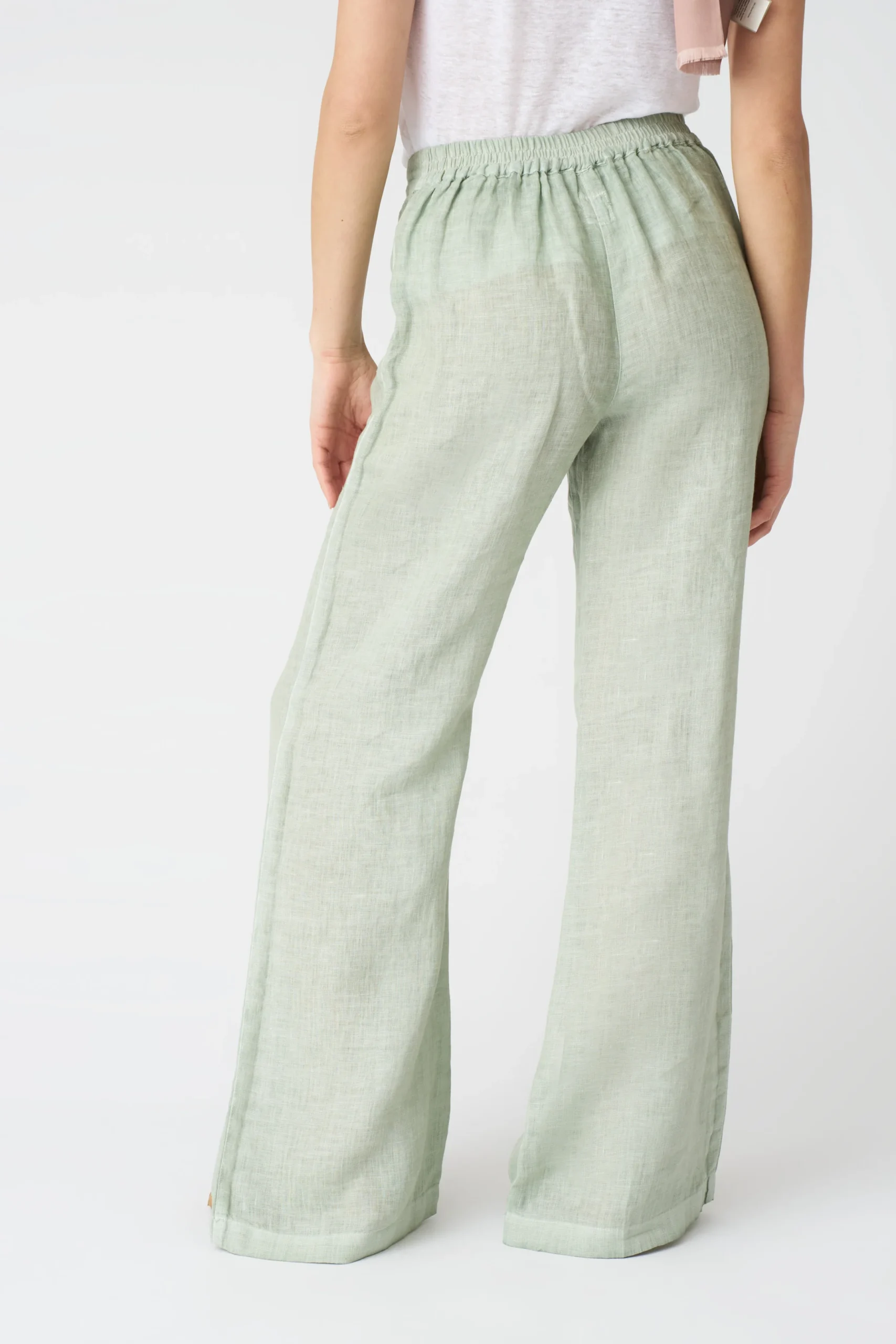 Daily Casual Style with Light Green Linen Wide – Leg Trousers