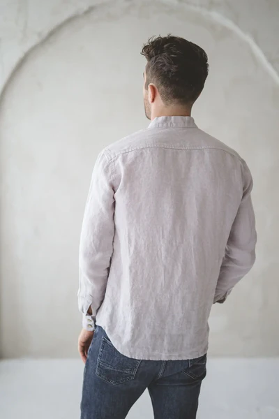 Light Grey Linen Band – Collar Shirt