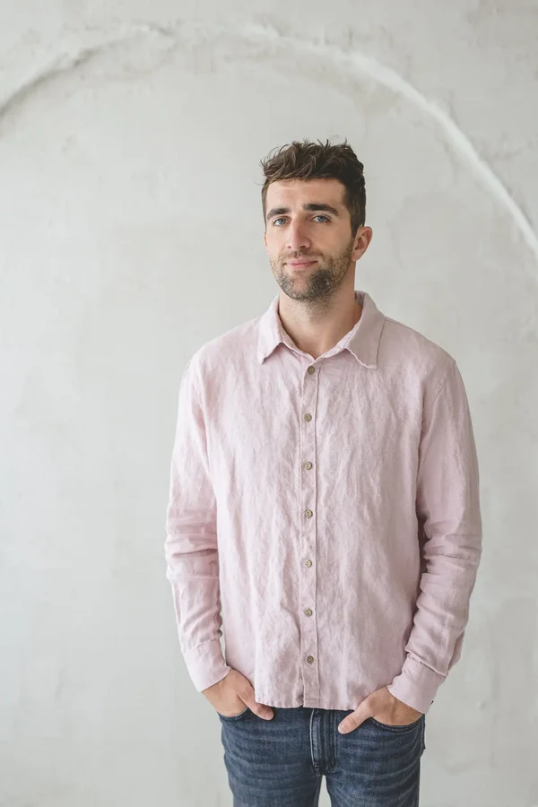 Artistic Romance in Light Pink Linen Shirt Look