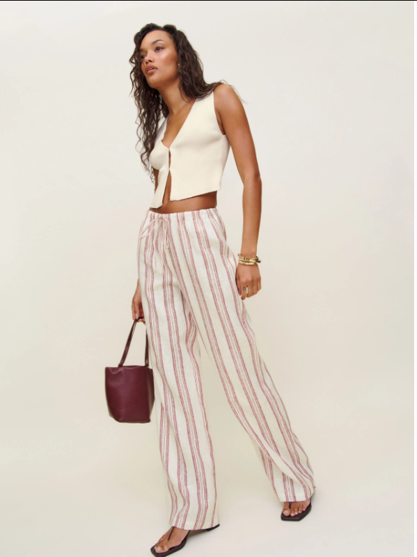 Wide-Leg Silhouette Exudes Elegance, Stripes & Drawstring Add Grace