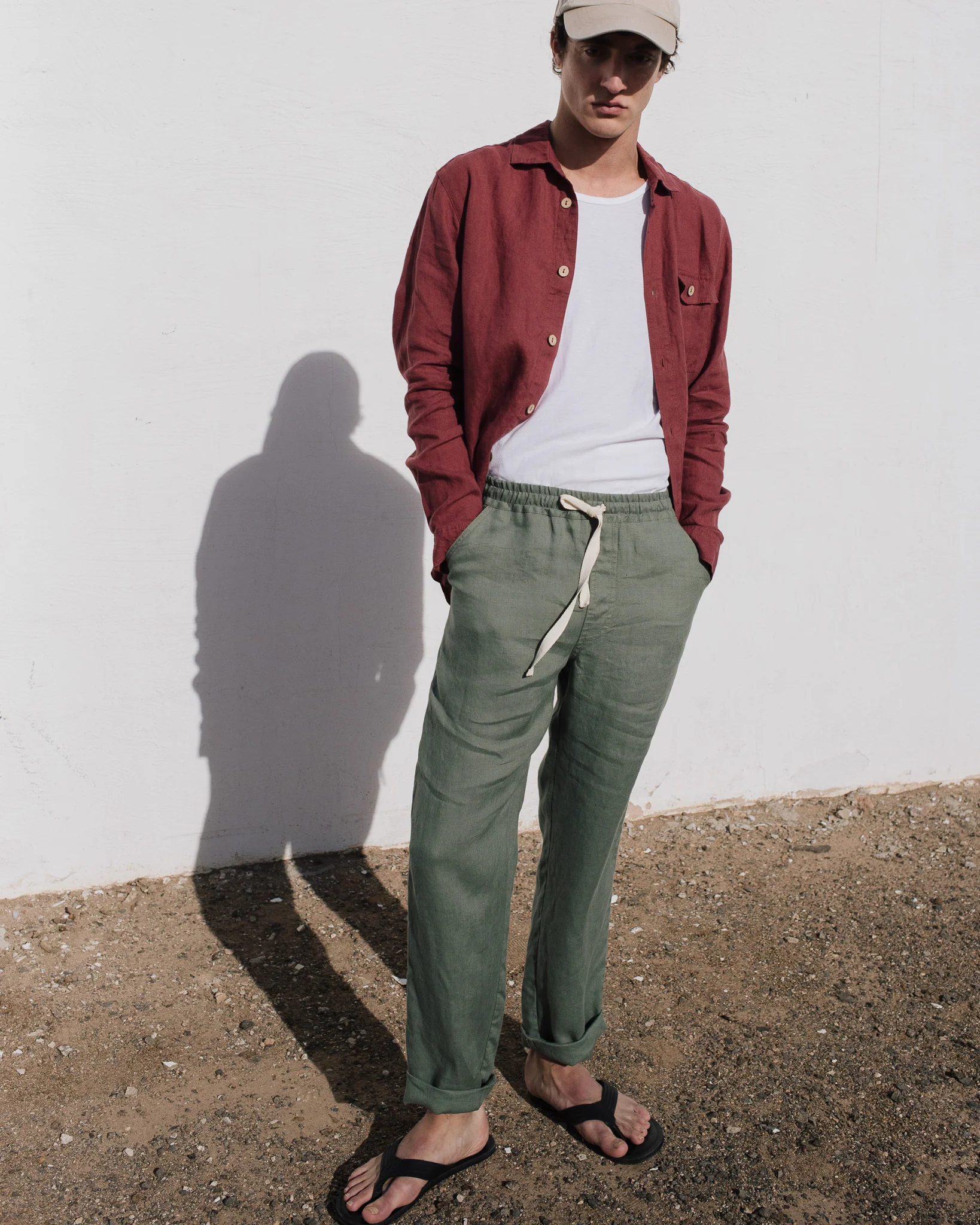 Casual Comfort of Olive Green Linen Drawstring Trousers