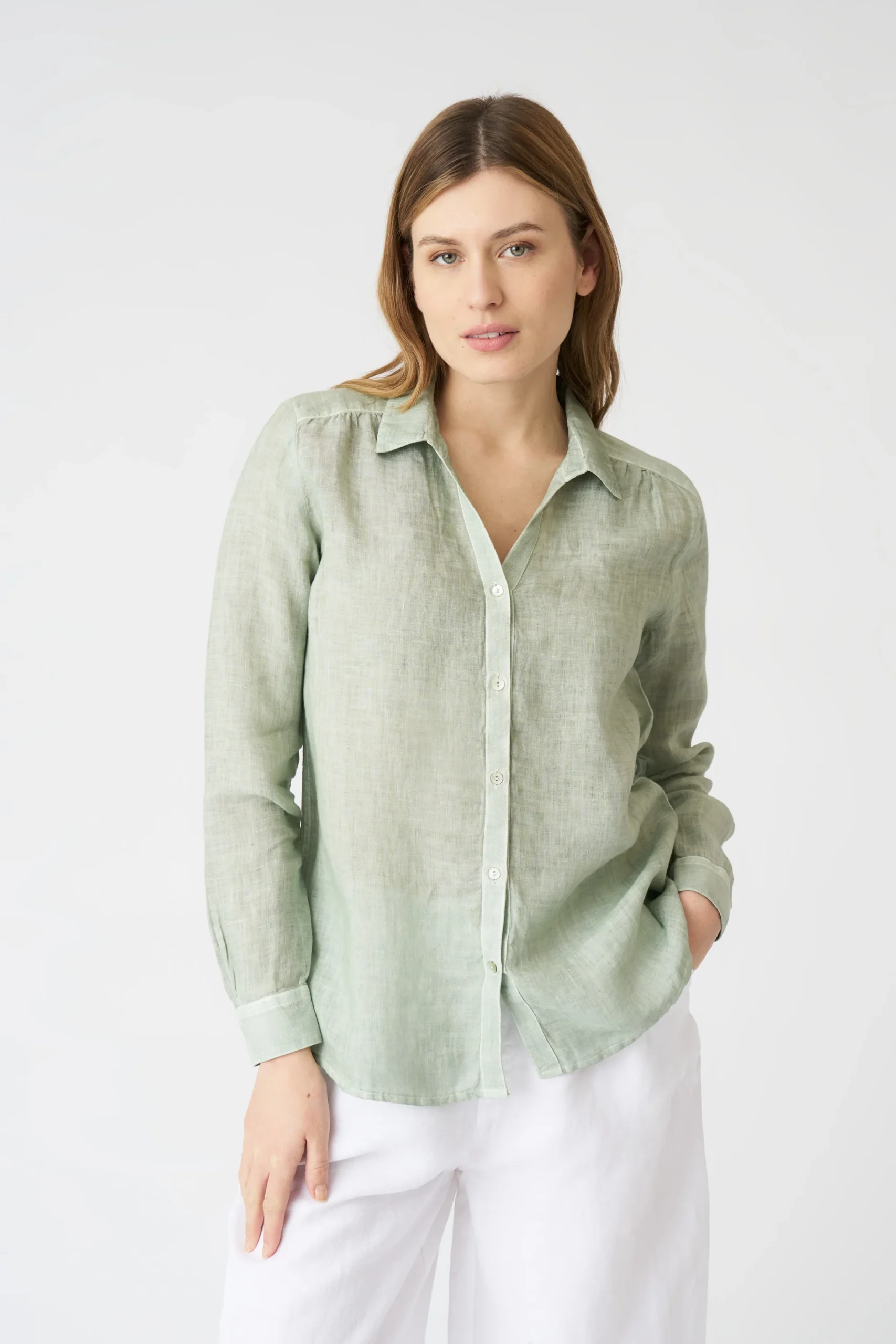 Light Fashionable Style in Sage Green Button – Down Shirt
