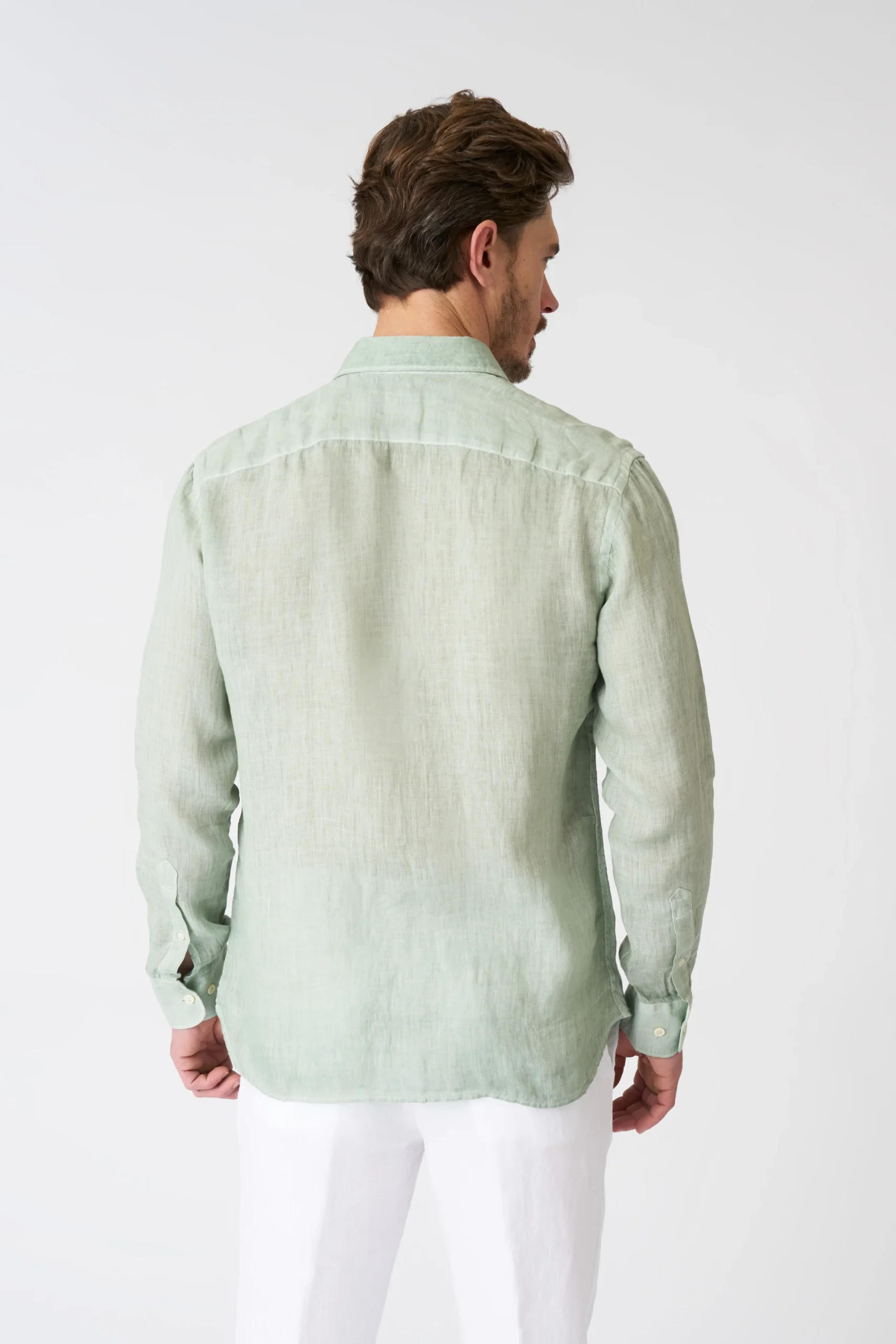 Modern Casual Style in Sage Green Linen Long – Sleeve Shirt
