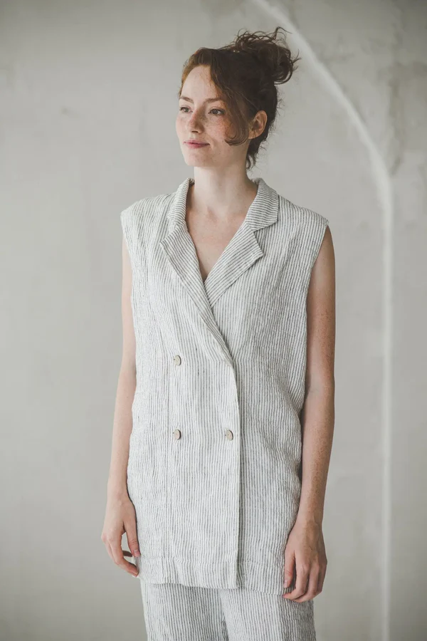Daily Freshness in Striped Linen Double – Breasted Vest
