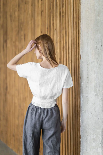 features and Special design:This white top is a beautiful blend of simplicity and charming design. The boat – neck and tie – waist create a graceful, feminine silhouette.