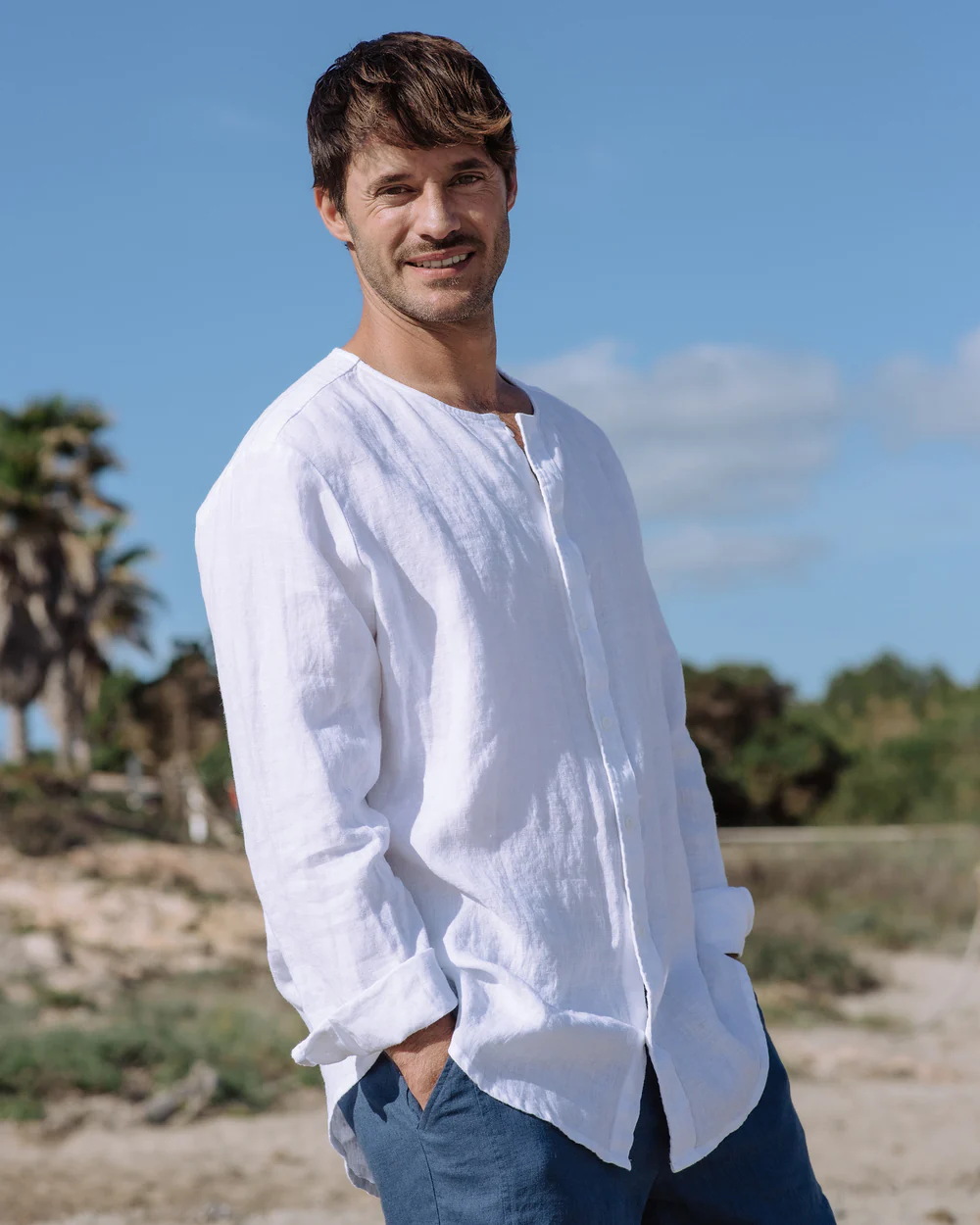 Artistic Freshness in White Linen Shirt Look
